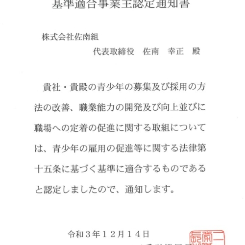 お知らせ 2022.01.18 ユースエール認定企業に認定されました お知らせ 2021.09.17 ボランティア活動を行いました お知らせ 2021.07.20 優良工事の表彰を受けました。 お知らせ 2021.03.17 企業説明会に参加しました お知らせ 2021.03.15 ホワイトデー お知らせ 2021.03.01 建設業年度末労働災害防止強調月間 お知らせ 2021.02.05 省エネルギー月間 2 / 212